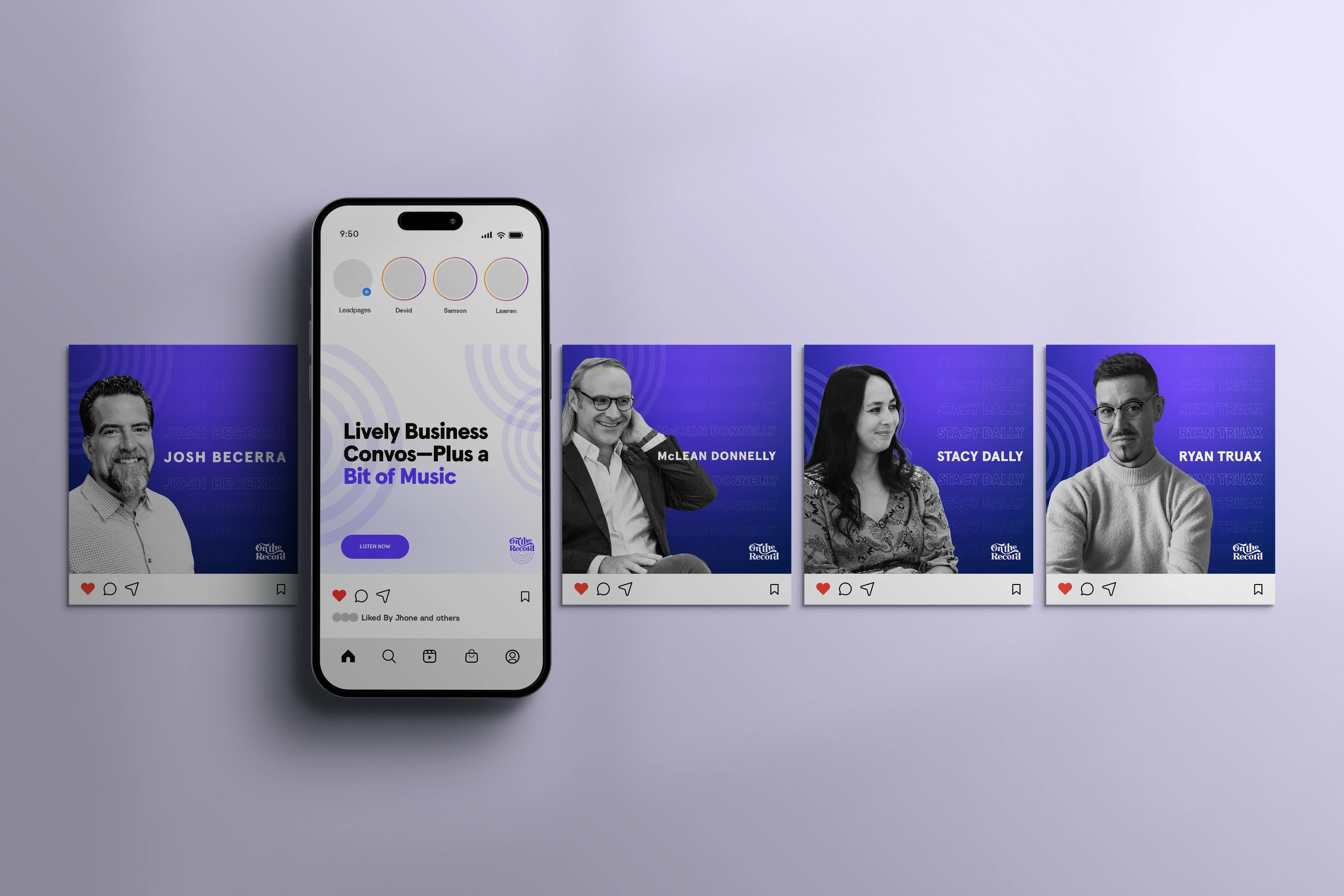 To position Leadpages as a trusted voice in marketing and business, the team launched On The Record, a podcast designed to spark conversation and showcase expertise. My role was to craft a cohesive brand identity that captured the podcast’s authority and energy, including logo design, identity system, website, and photography. I also directed the creative execution across motion graphics, video episodes, and social campaigns—building an identity system that felt as credible and engaging as the conversations themselves.